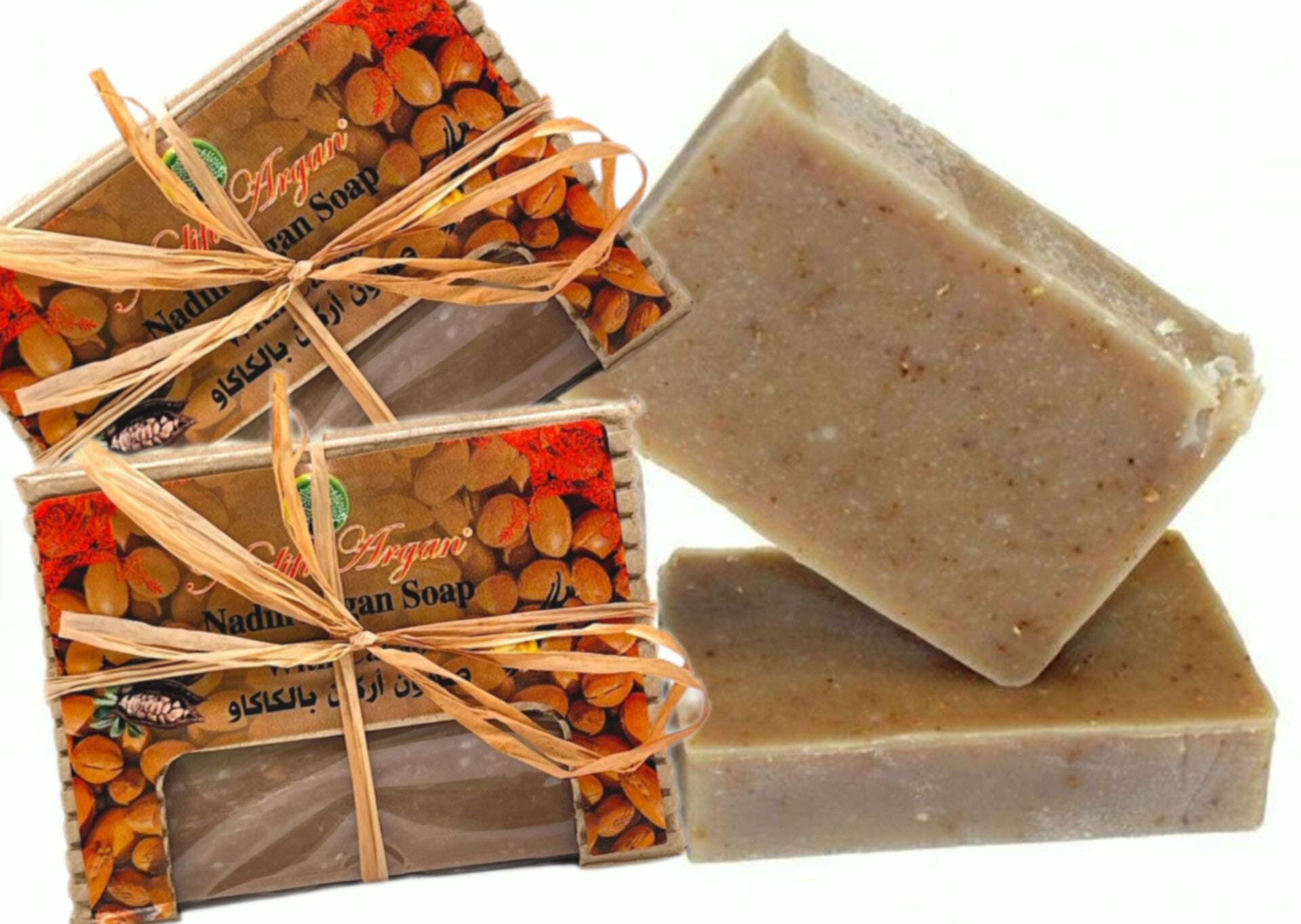 Our exfoliating Nadifi Argan Cacao soap is made through a cold, traditional saponification which keeps all our ingredients' nutrients. It provides hydrating, nourishing, and protective benefits while cleansing your skin with both argan & olive oils.