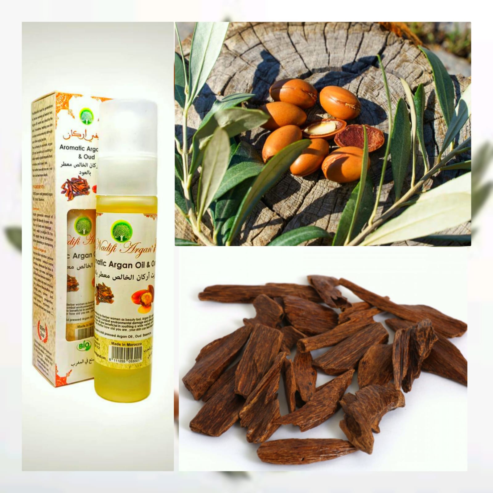Nadifi Argan brings you the best of Aromatic Argan oil for body and hair, made out of cold pressed organic Argan oil, to which we added Oud Essential oil aiming to nourish dry skin, soothe it and perfume it delicately. A recipe that caters to different popular demands thanks to its firming, nourishing, refining and toning. Argan oil is a true secret of ancestral beauty used by Berber women to maintain their beauty. This fragrant argan oil is a beauty elixir 100% natural, vegetable and organic, without chemical additives or preservatives.