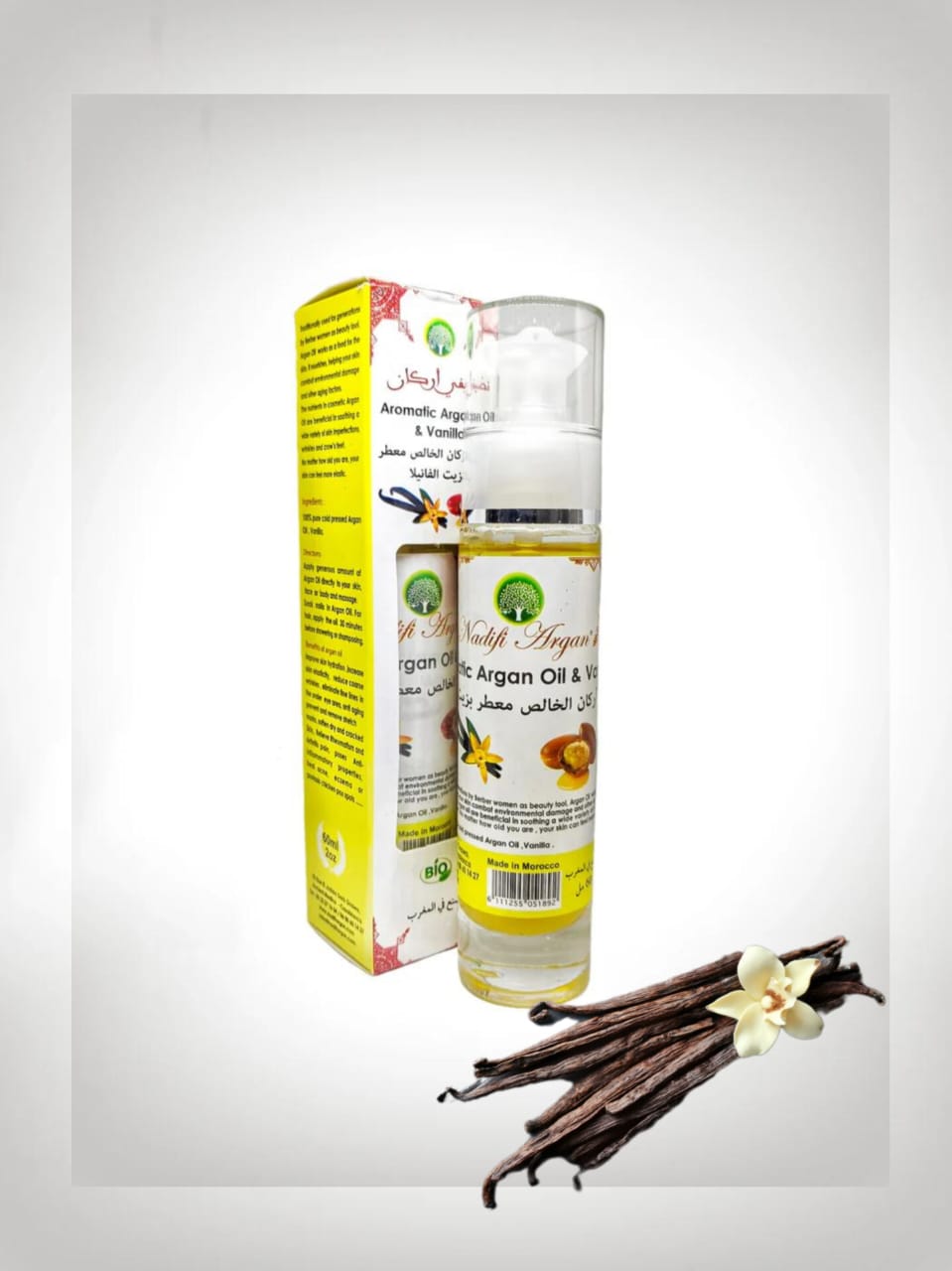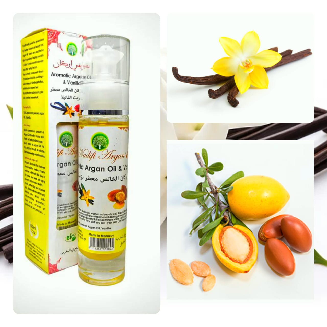 Nadifi Argan brings you the best of Aromatic Argan oil for body and hair, made out of cold pressed organic Argan oil, to which we added Lavender Essential oil aiming to nourish dry skin, soothe it and perfume it delicately. A recipe that caters to different popular demands thanks to its firming, nourishing, refining and toning. Argan oil is a true secret of ancestral beauty used by Berber women to maintain their beauty. This fragrant argan oil is a beauty elixir 100% natural, vegetable and organic, without chemical additives or preservatives.