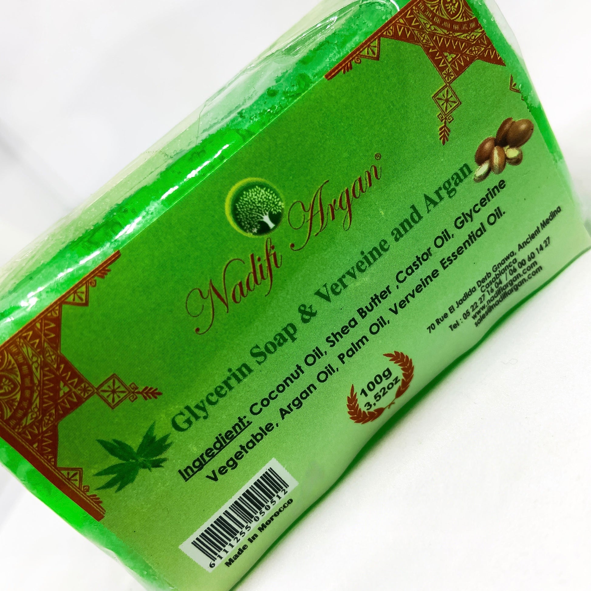 Ingredients: Coconut Oil, Shea butter, Castor Oil, Glycerine Vegetable, Argan Oil, , Palm Oil, Verveine Essence Oil.